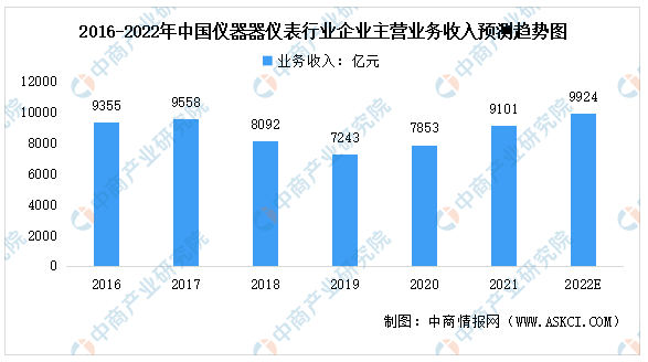隨著節(jié)能降耗、低碳經(jīng)濟、民生產(chǎn)業(yè)、戰(zhàn)略性新興產(chǎn)業(yè)的持續(xù)發(fā)展以及國家對食品安全和環(huán)境保護的重視程度加大,為我國儀器儀表行業(yè)帶來了新的機遇。中商產(chǎn)業(yè)研究院預測,2022年我國儀器儀表行業(yè)企業(yè)主營業(yè)務收入將達9924億元。
